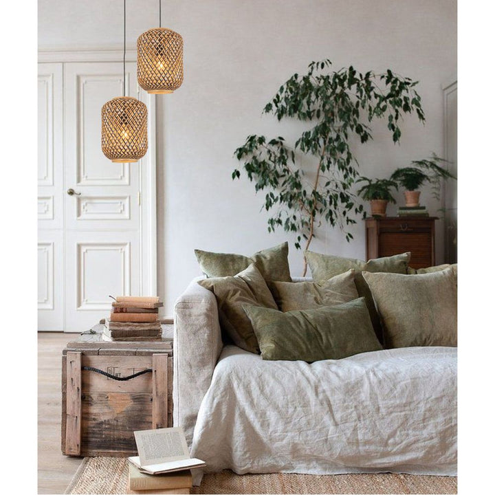 CLA CESTA - 1 Light Interior Cylinder Bamboo Cage Pendant Light IP20