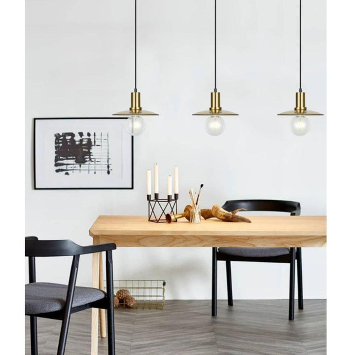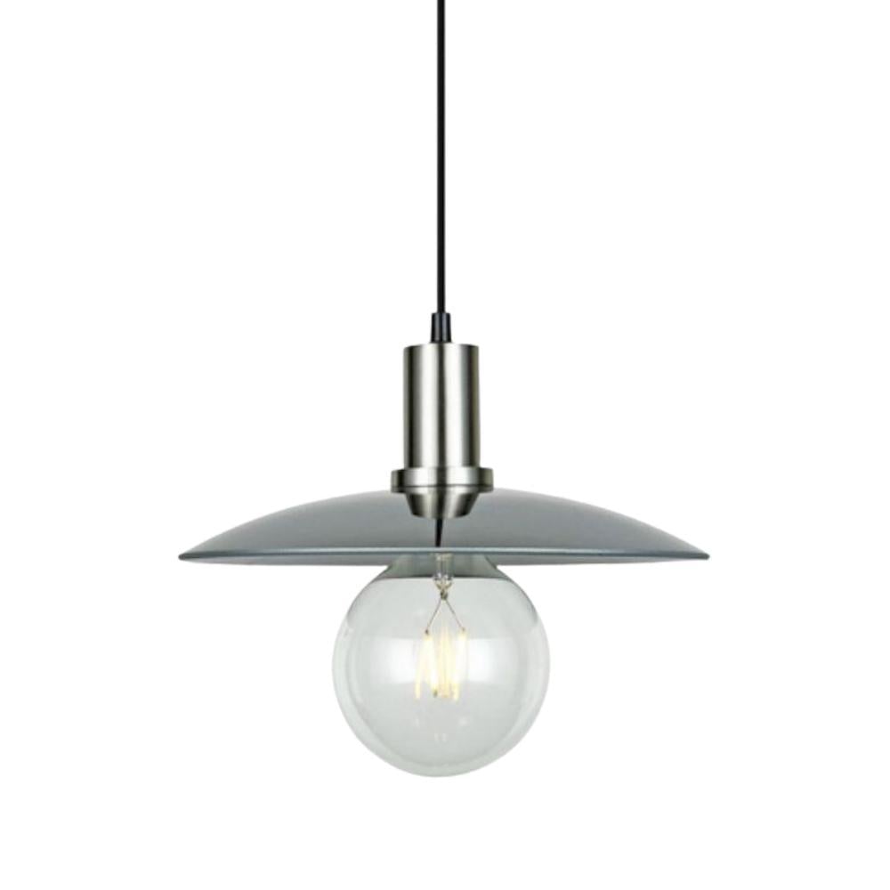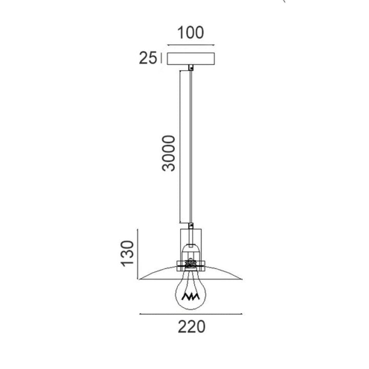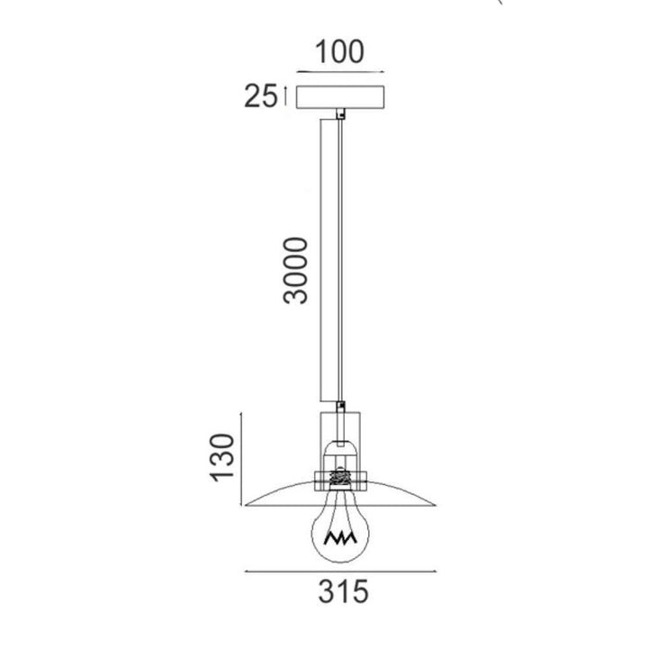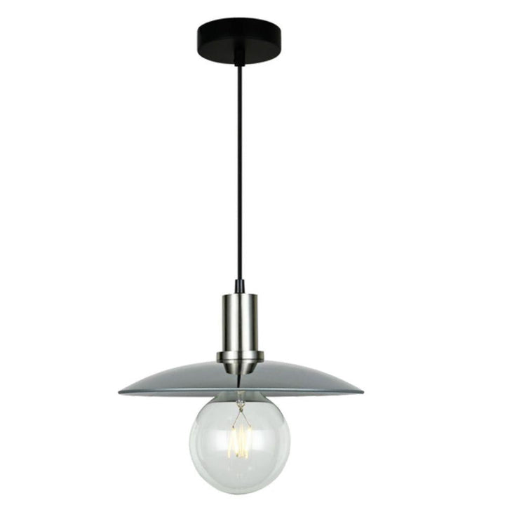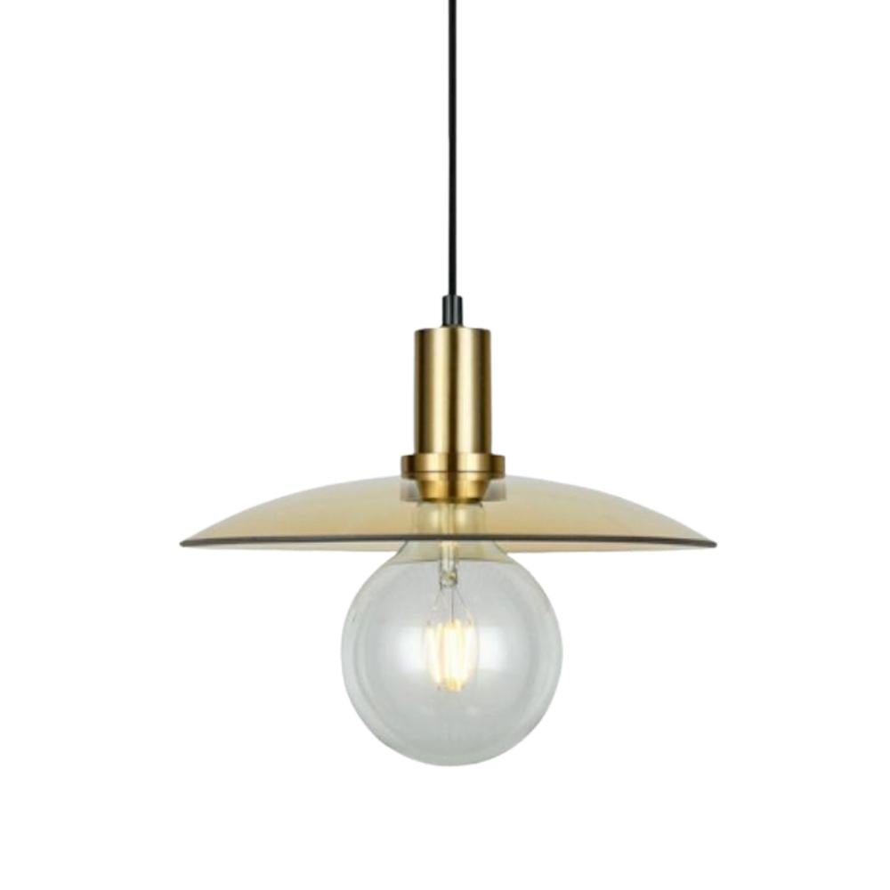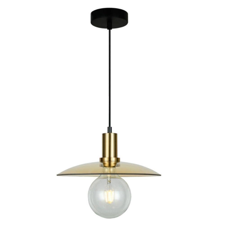 The Chapeau pendant light is constructed from iron and glass with an open shade design. This design ensures the globe is exposed and would suit a decorative globe.