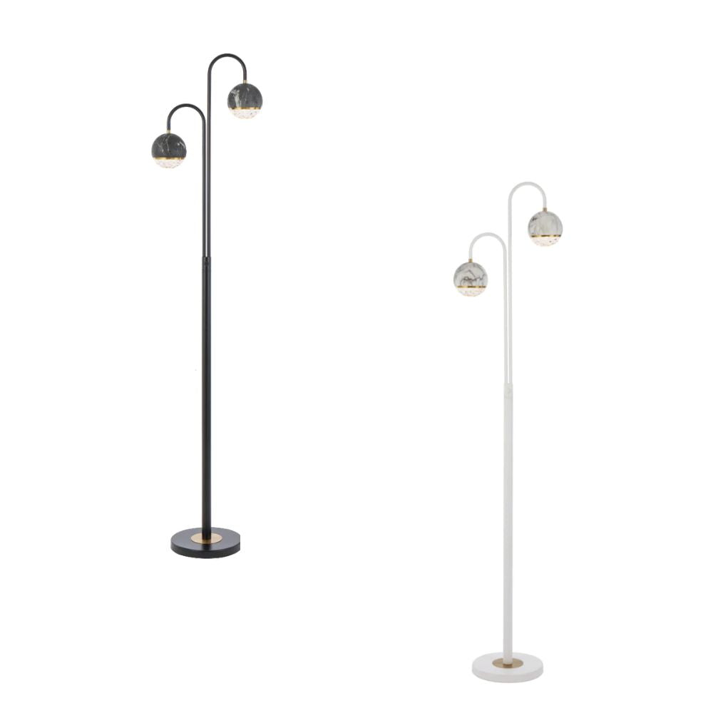 Elegant and sophisticated, the ONETA features a marble-look sphere that houses a precise optical faceted dome to create a floor lamp that transforms a space. Available in Black and White.