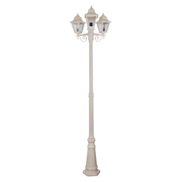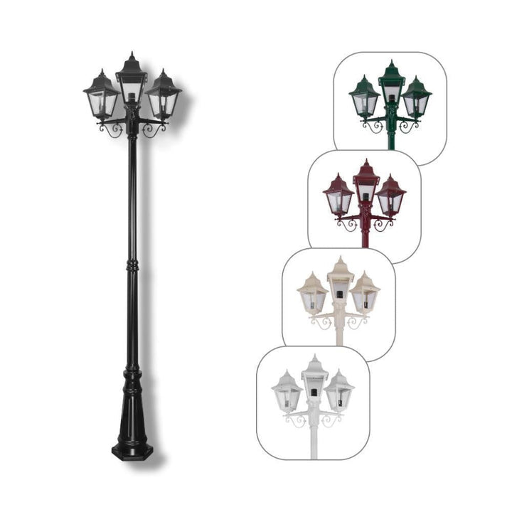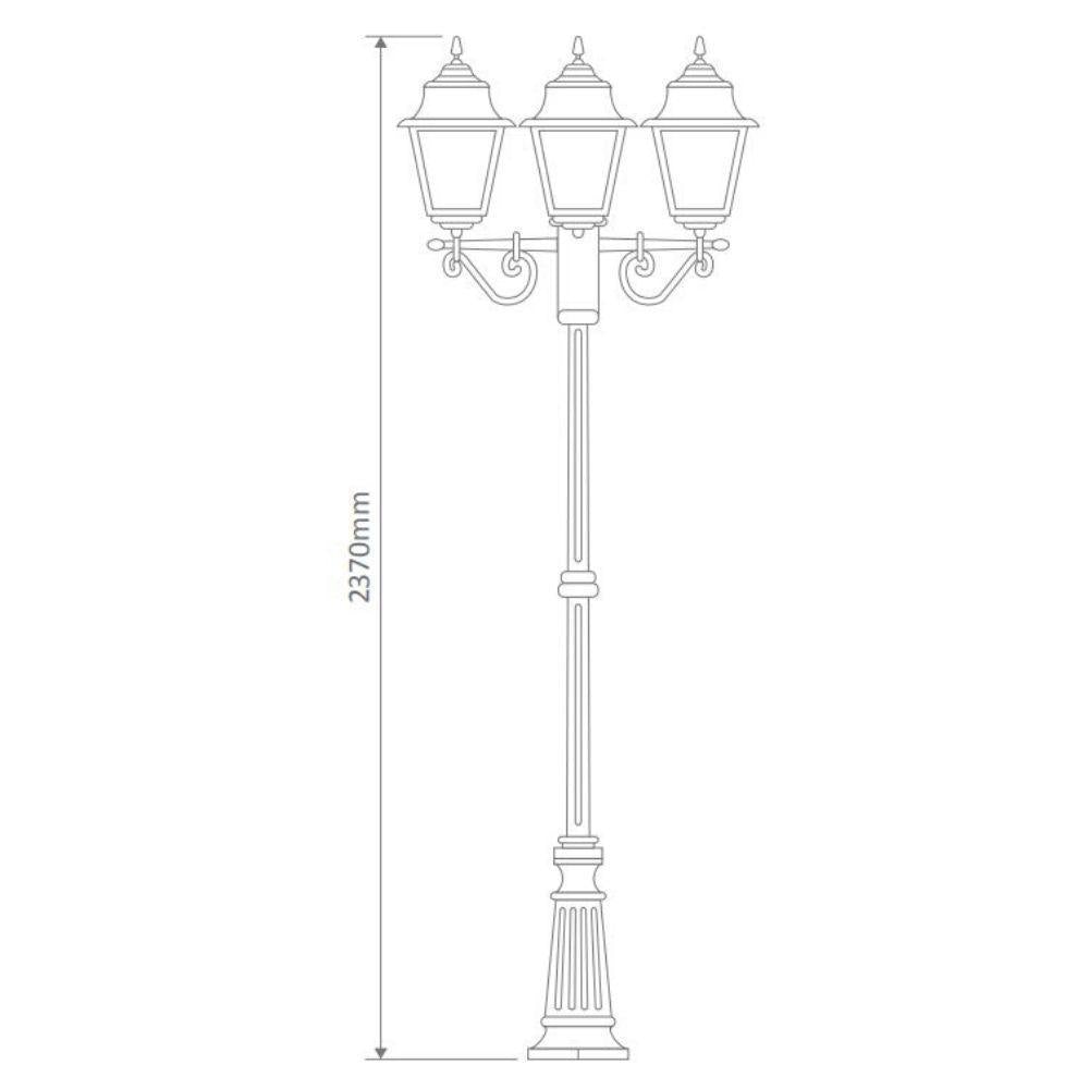 Paris 3 light 2.45m post light, die-cast aluminium body and moulded acrylic lens. Made in Italy, assembled and powder coated in Australia.