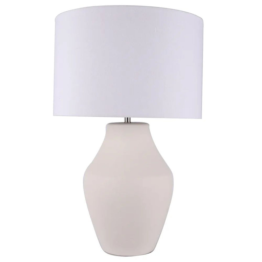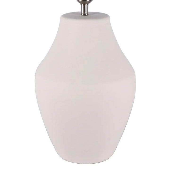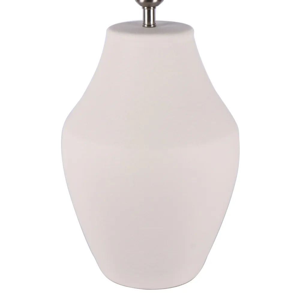Simplicity meets elegance in this modern ceramic table lamp. Featuring a soft white matte finish, the lamp€™s smooth, curved silhouette exudes timeless appeal, making it a versatile addition to any interior. Paired with a crisp white fabric shade, it offers a gentle, ambient glow to create a calm and sophisticated atmosphere in living rooms, bedrooms, or hallways. Designed to be a conversation starter and a focal point.