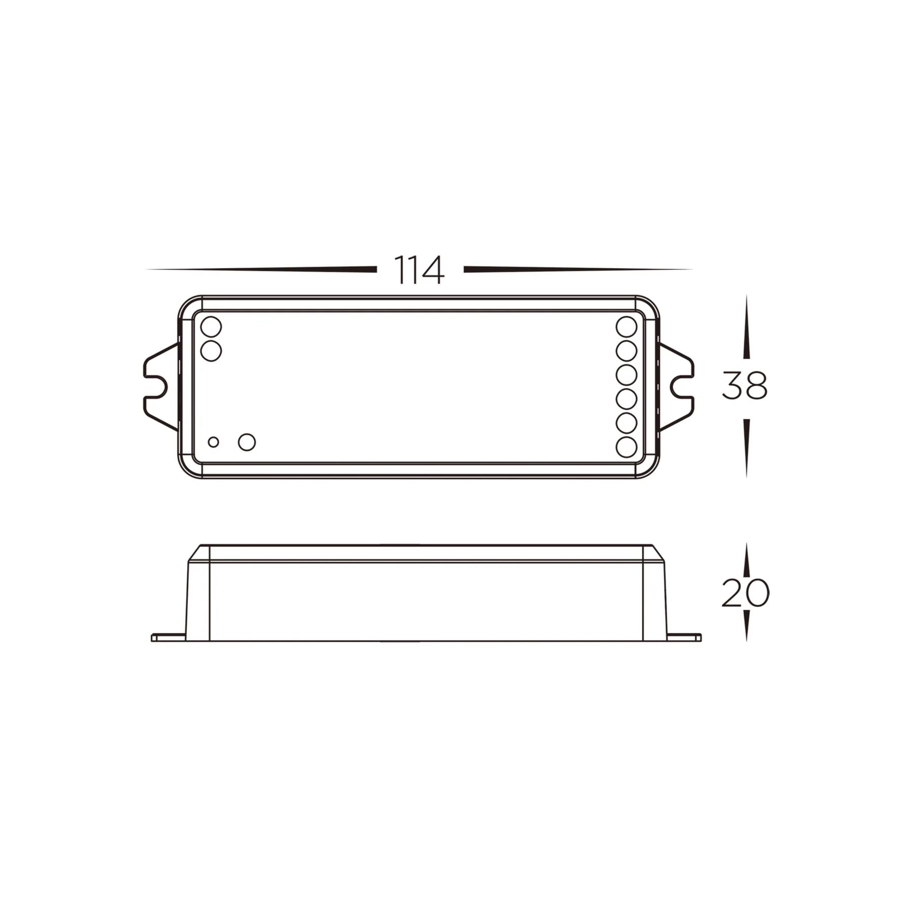 - L: 114mm x W: 38mm x H: 20mm