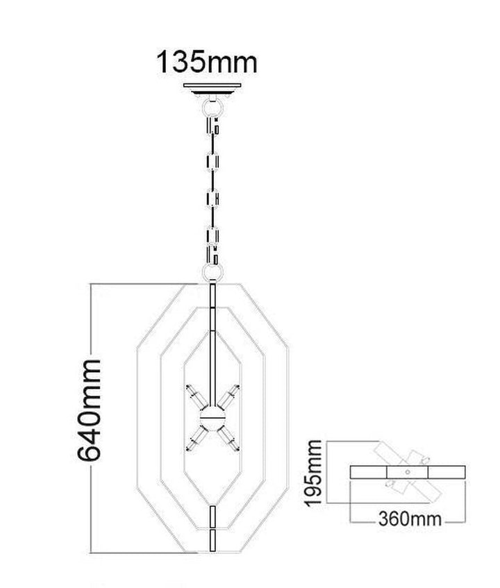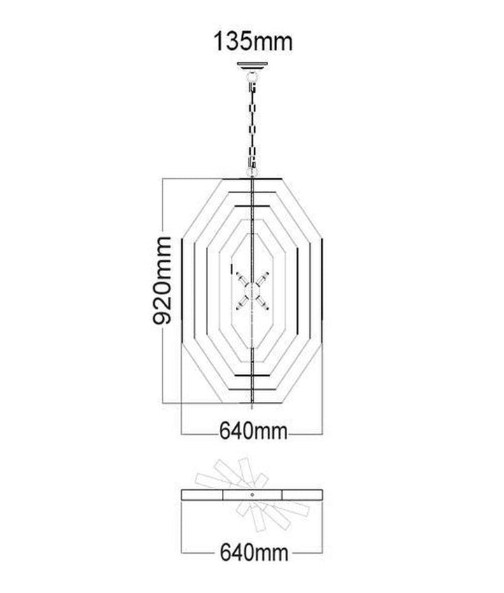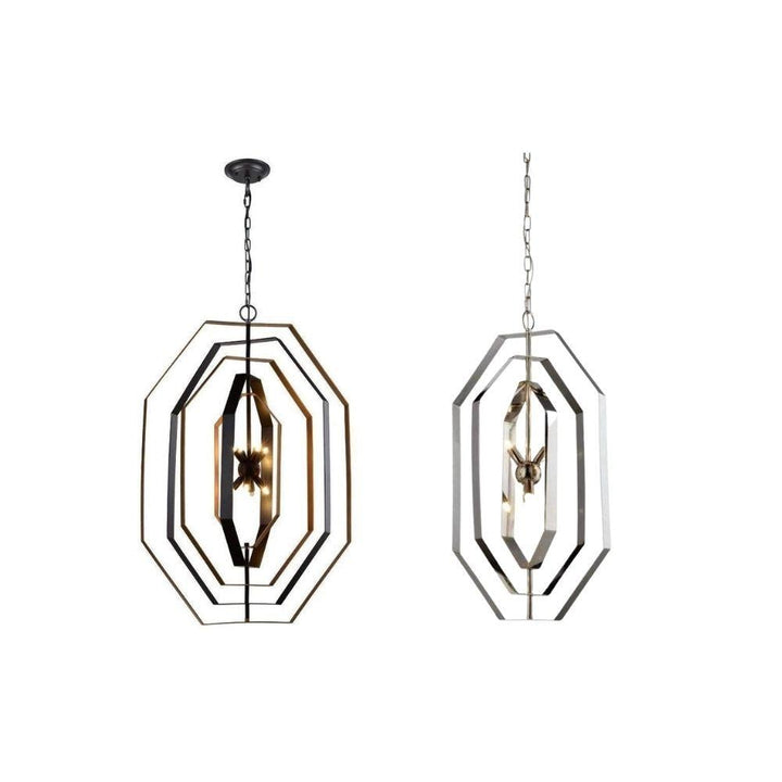 ORBITA-O metal pendant Series is a modern octagon design, with the flexibility of changing the look of the pendant by moving the grilles to suit the desired appearance. Ideal as a feature pendant in living rooms, bedrooms, as well as in cafes and bars. The small model is available in Polished Nickel with Stainless Steel highlights, and the large model is available in Oil Rubbed Bronze with Antique Gold highlights.