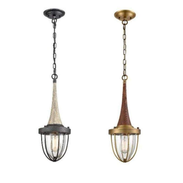 PENDOLO metal and timber Series is a caged metal dome pendant. Featuring weathered Charcoal hardware with washed wood and clear glass, or Satin Brass hardware with dark wood and clear glass. Suitable as a feature pendant in most applications.