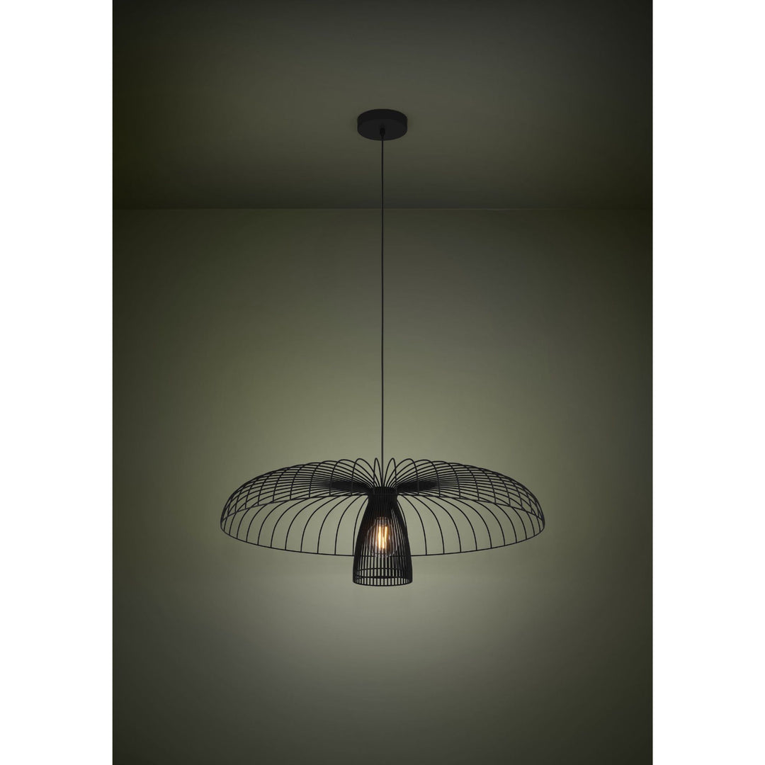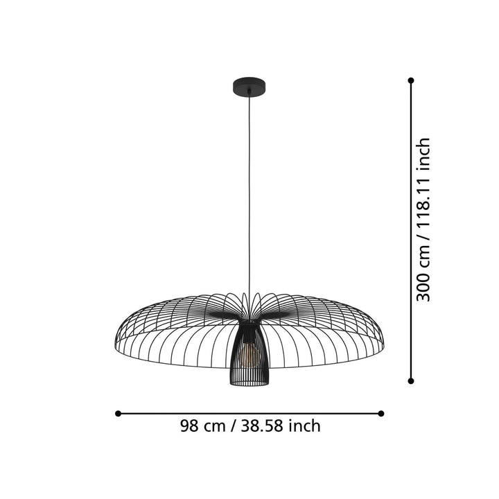 Achieve a minimalist, modern look with the CHAMPERICO pendant’s bold black wire shade. Perfect for spacious living rooms or dining.