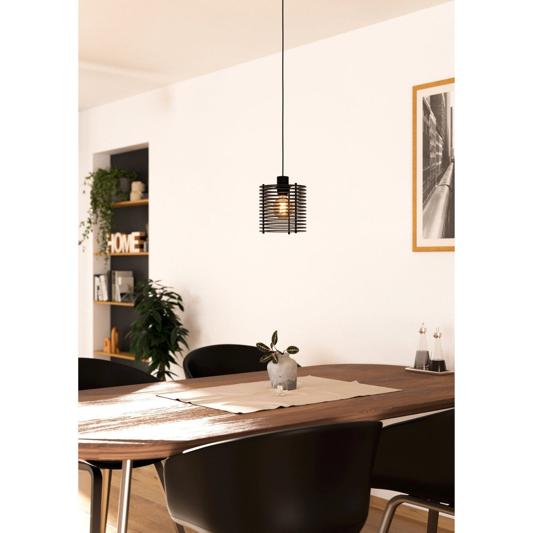 The SEGOVIA pendant marries elongated steel slats in black for a dramatic, contemporary aesthetic.
