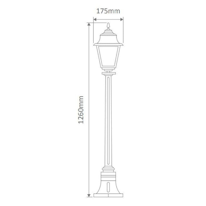 Paris 1 light 1.31m post light, die-cast aluminium body and moulded acrylic lens. Made in Italy, assembled and powder coated in Australia.