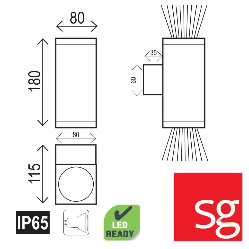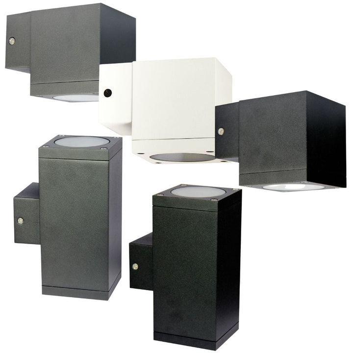 KUBE outdoor wall light from SG lighting is LED GU10 ready. The SG range features high quality poly powder coated finishes on chromic treated first quality alloy. This rigorous finishing process ensures that this fitting will look like new for many years. KUBE is available in a down only or up/down version in black, white or graphite. KUBE has a textured matt finish. Suitable for use with a GU10 globe.