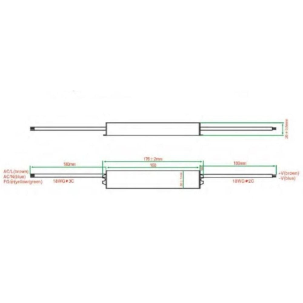 - L: 176mm x W: 30mm x H: 20mm - 20W