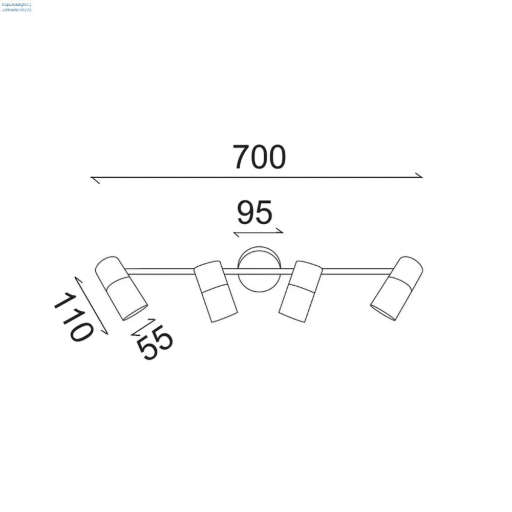 - Shade Diameter: 4 x Ø55mm x H: 110mm