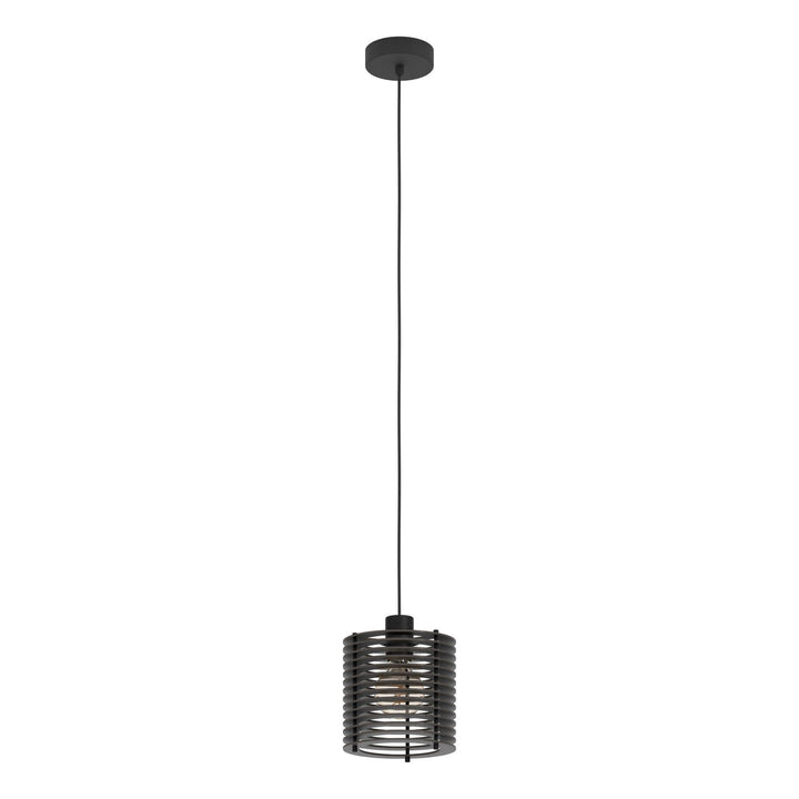 The SEGOVIA pendant marries elongated steel slats in black for a dramatic, contemporary aesthetic.